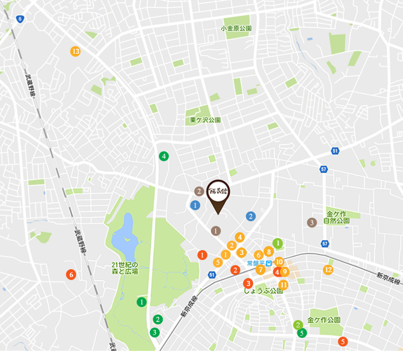 JR常磐線「松戸駅」下車、京成電鉄松戸線に乗り換え「常盤平駅」下車