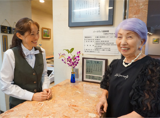 フロントには職員が24時間常駐し、毎日の安心で快適なご生活を本当のご家族のようにサポートさせていただきます。 -