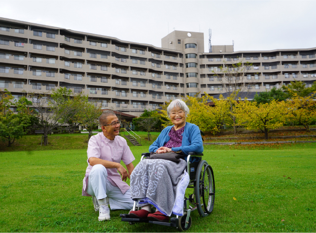 館内にある介護フロアには看護師や介護士が24時間常駐しており、日々の健康相談や、一時的な体調不良、毎日の介護や、緊急時まで、ご対応させていただきます。